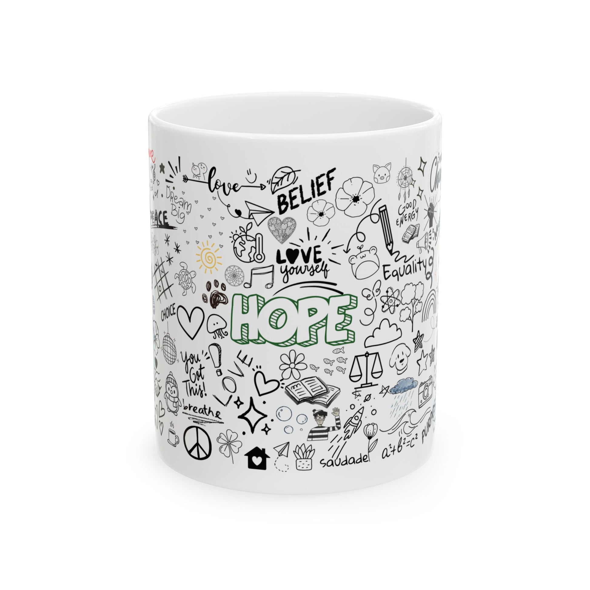 Doodle Energy brings the chaos of creativity and the calm of intention into one joyful cup. Covered in positive and powerful doodles, this cup is filled with hope, kindness, creativity, and a quiet kind of rebellion.