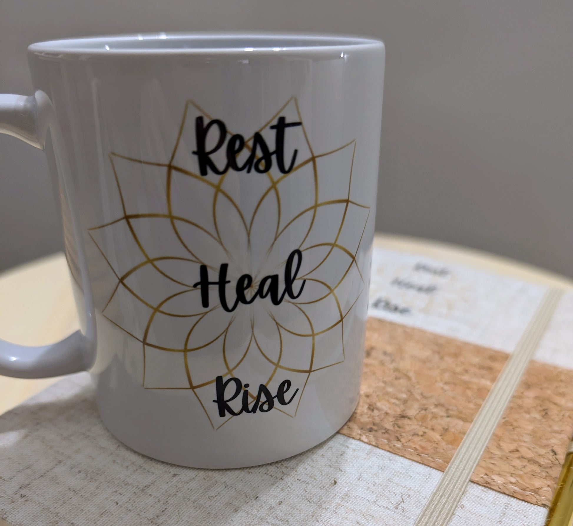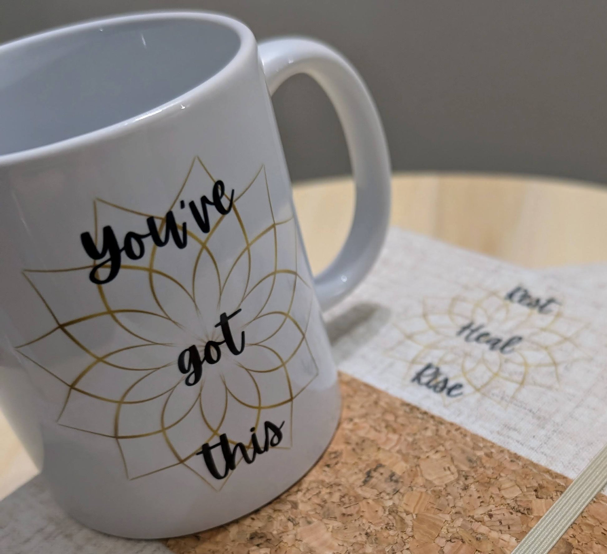 - A motivational mug, ideal for sipping tea or coffee while they rest.