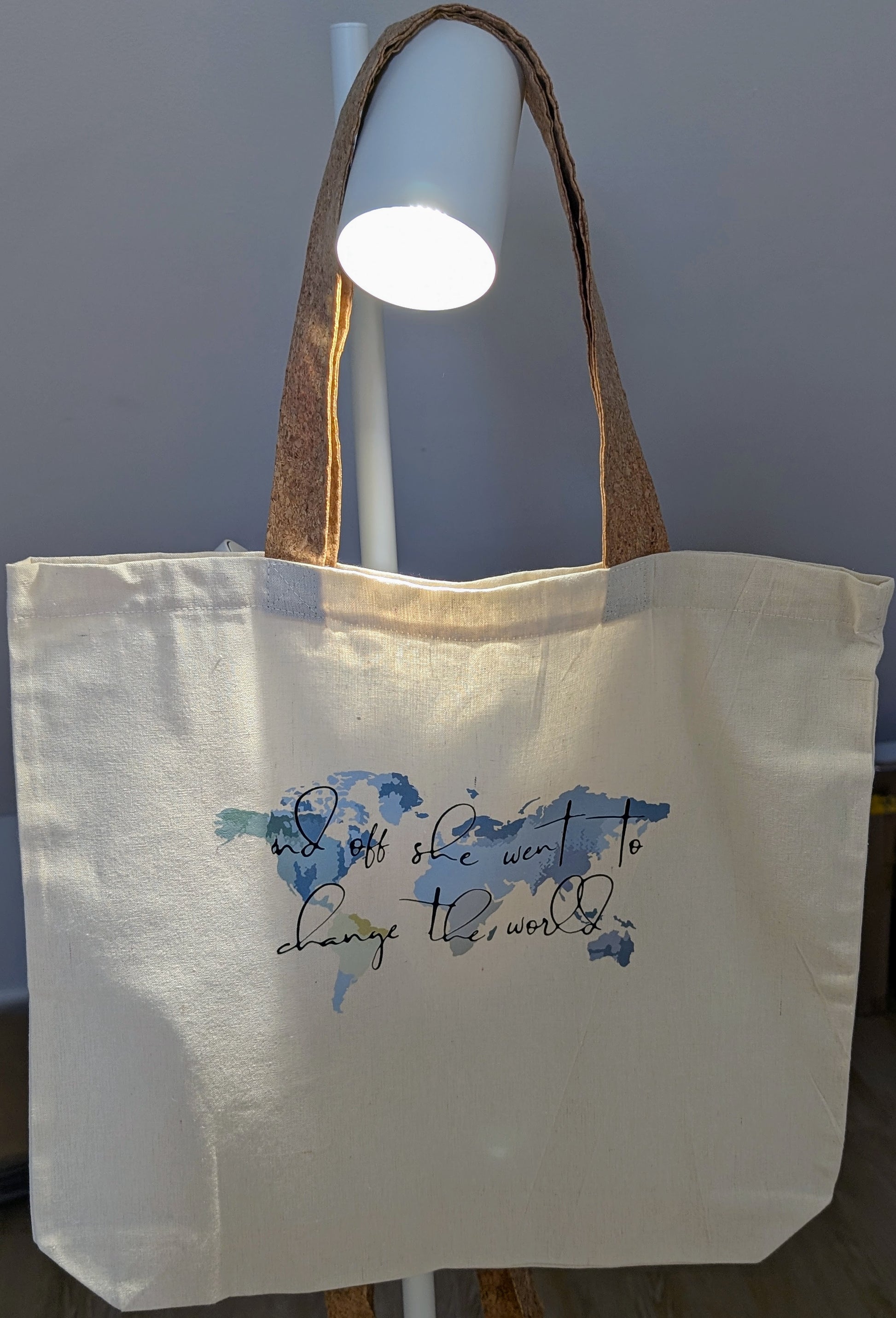 Thoughtfully crafted from 100% cotton with reinforced natural cork handles, these bags blend style, sustainability, and a whole lot of inspiration.